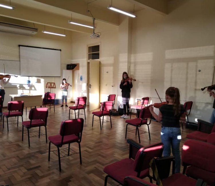 O canto coral é oferecido aos alunos dos anos finais do ensino fundamental, ensino médio e adultos. É uma prática gratuita.